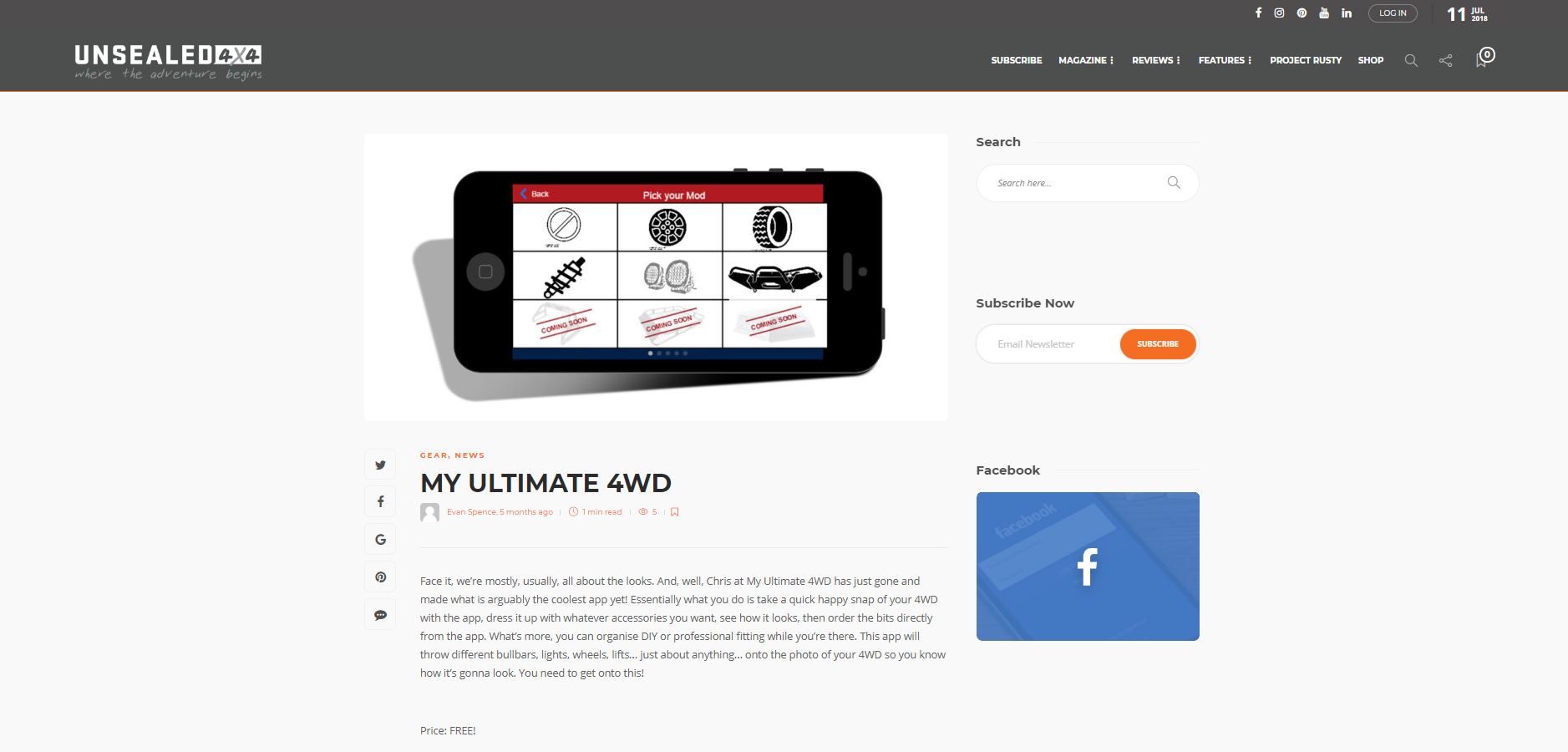 Well it seems the big dog at Unsealled 4x4 magazine Evan is a fan of My Ultimate 4wd. Very soon this vision i have been working on for 5 years will hit the app stores!